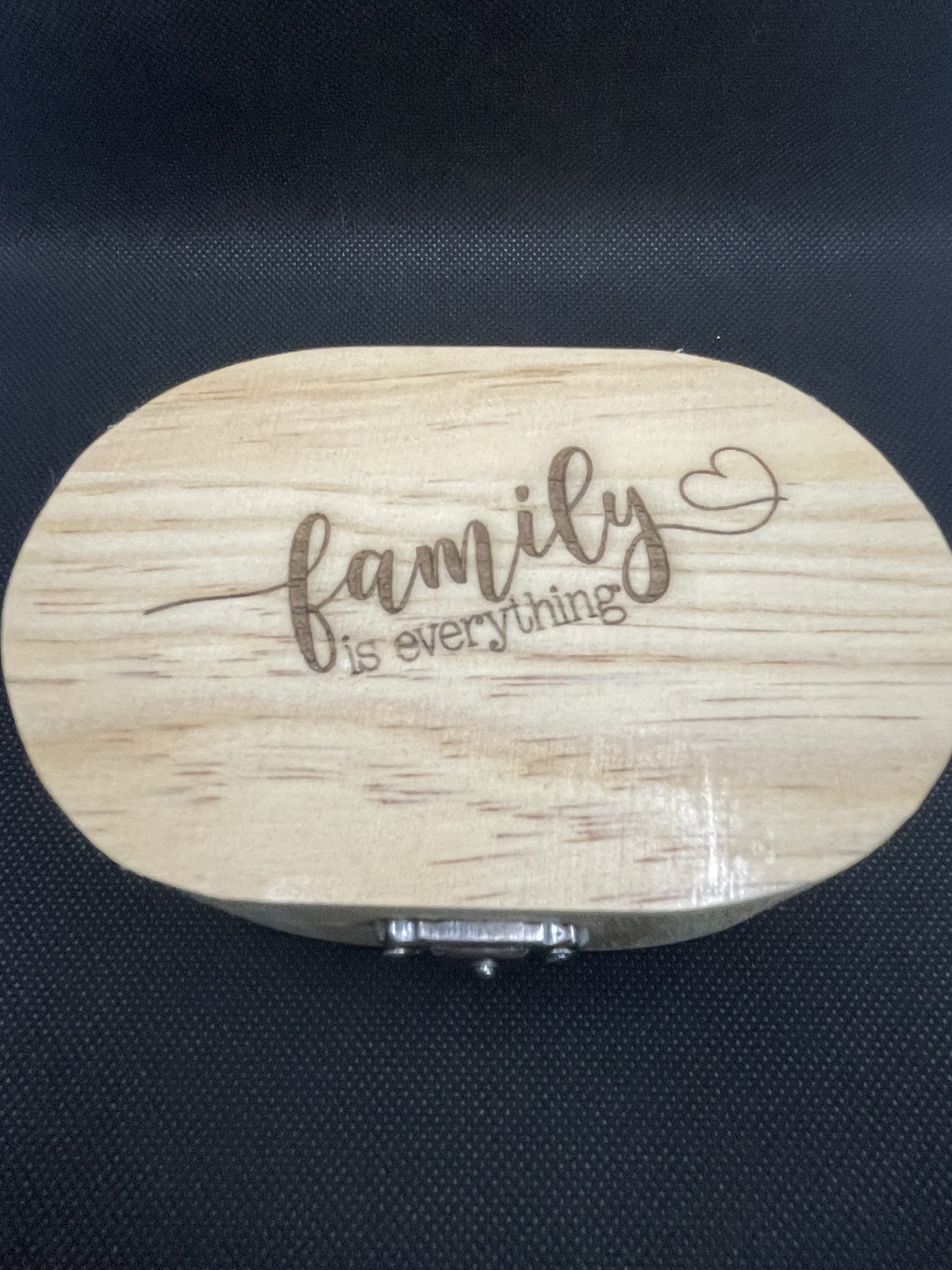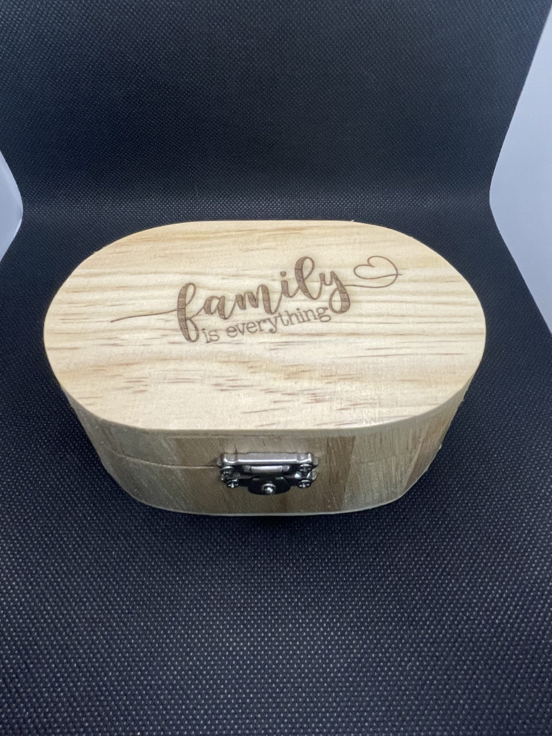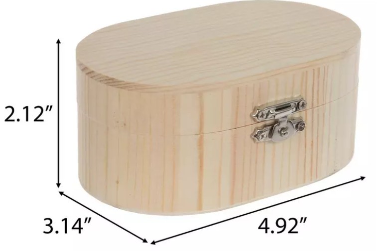 Features an oval shape and offers a hinged lid with a metallic silver latch.