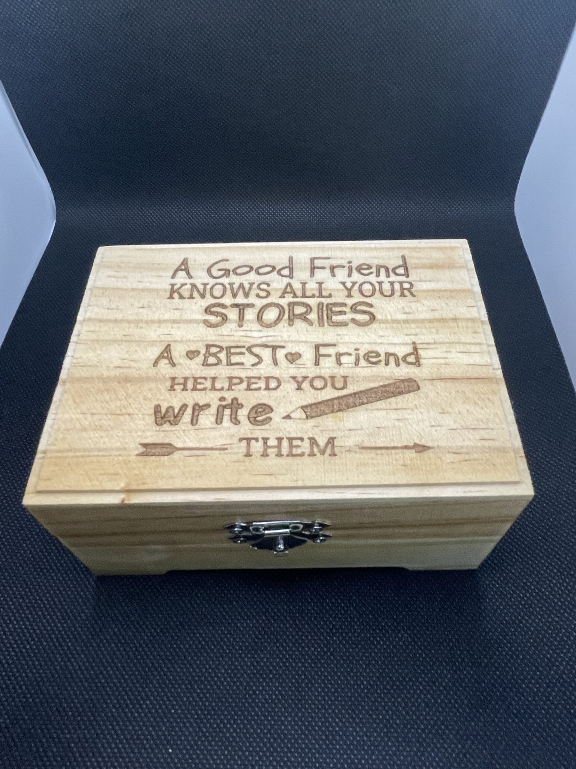 Features a rectangular shape with a beveled edge top and offers a hinged lid with a metallic silver latch.