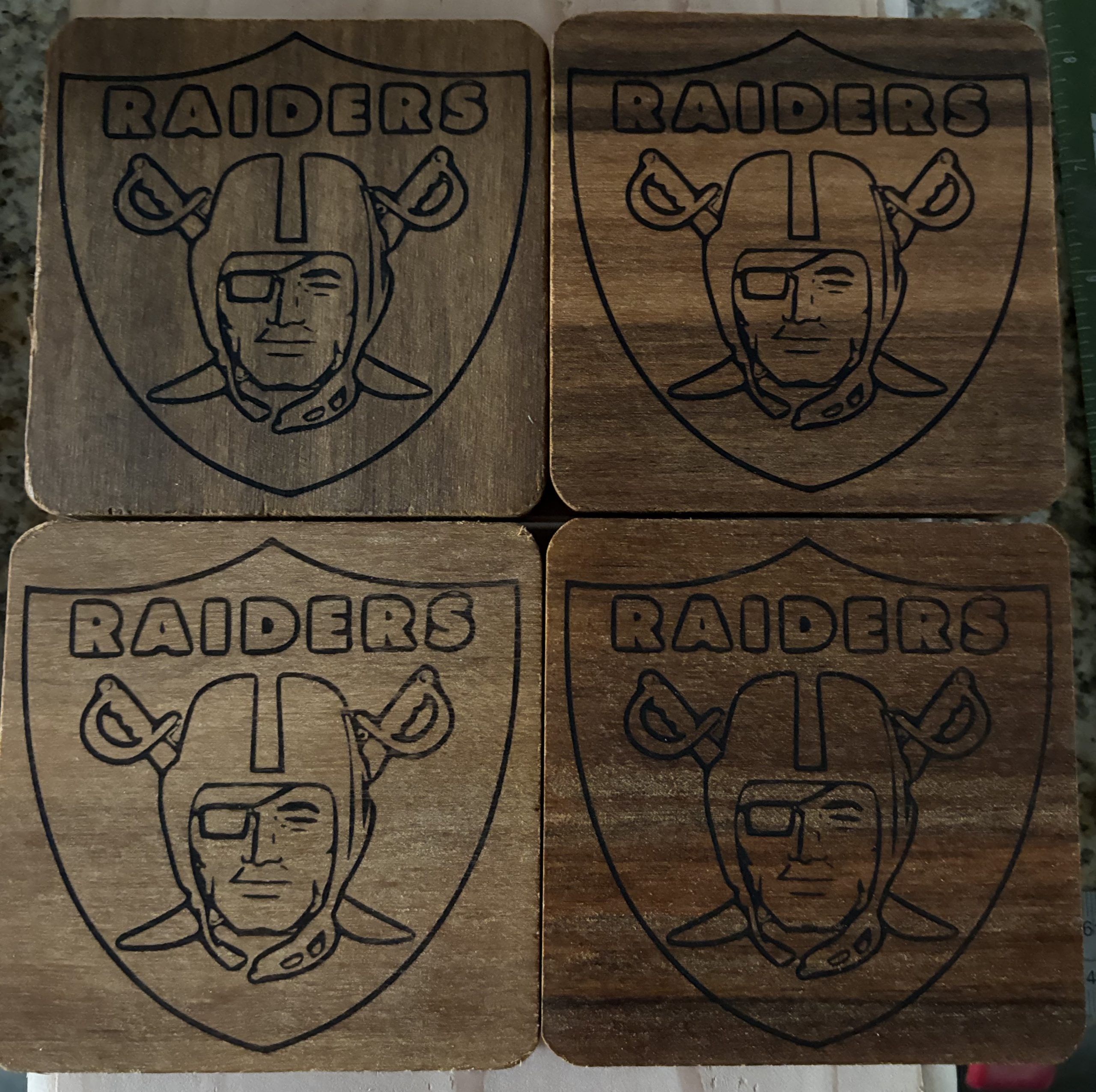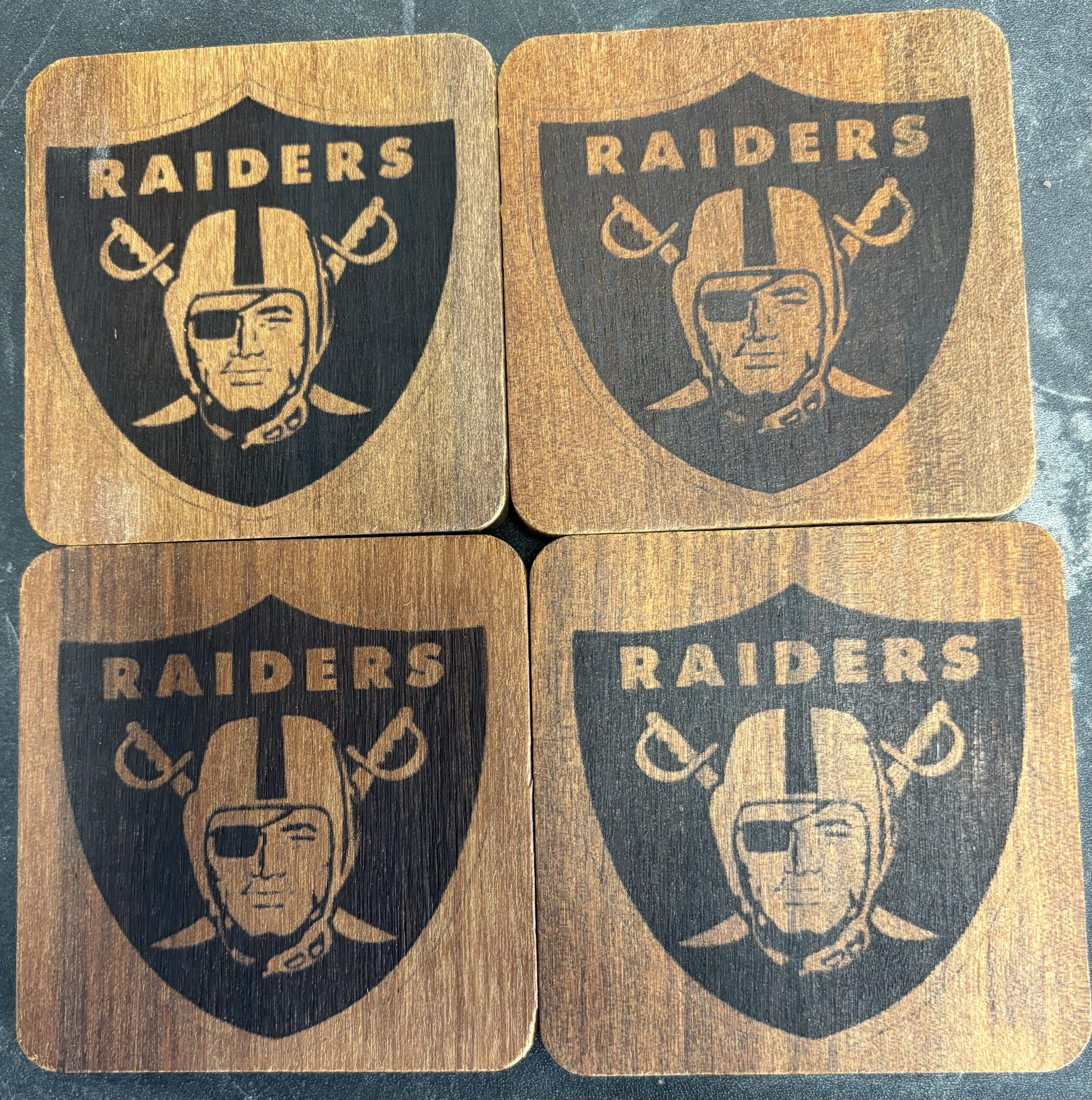 These wooden coasters feature a bold, engraved Raiders shield with crisp detailing that pops against the natural wood grain. The dark lines give it a rugged, handcrafted look, making it a perfect blend of décor and team pride. Durable, smooth, and ready for everyday use, it protects your surfaces while showing off your love for Silver and Black. Ideal for bars, desks, coffee tables, or as a gift for any dedicated fan.