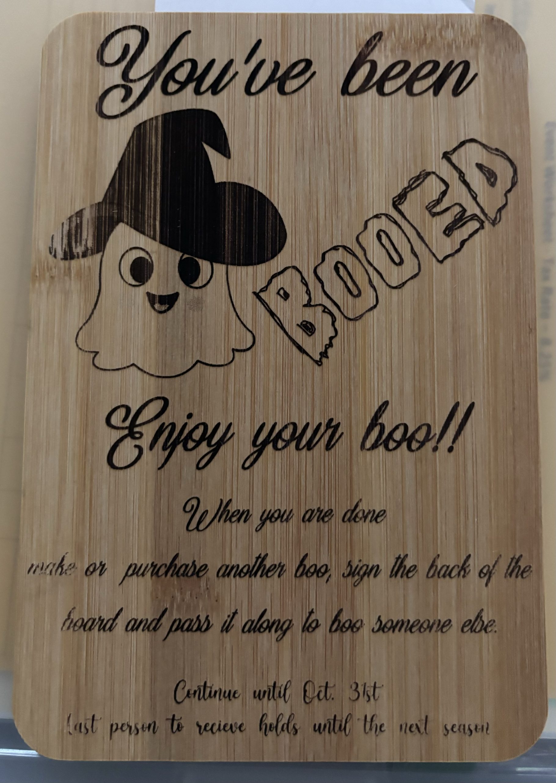 Bamboo sign “you have been booed”