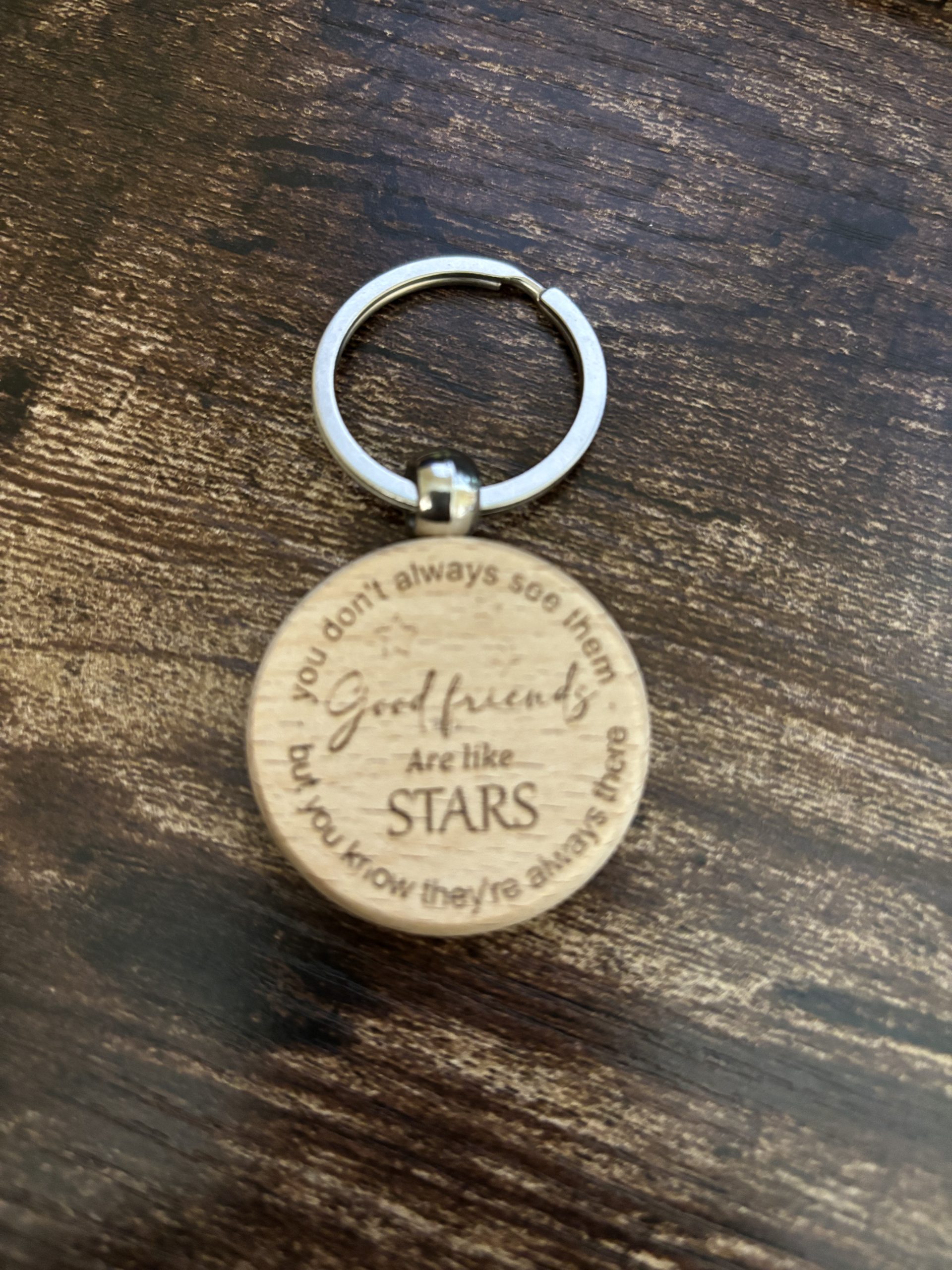 Wood keychains are made of beech and metal key rings.