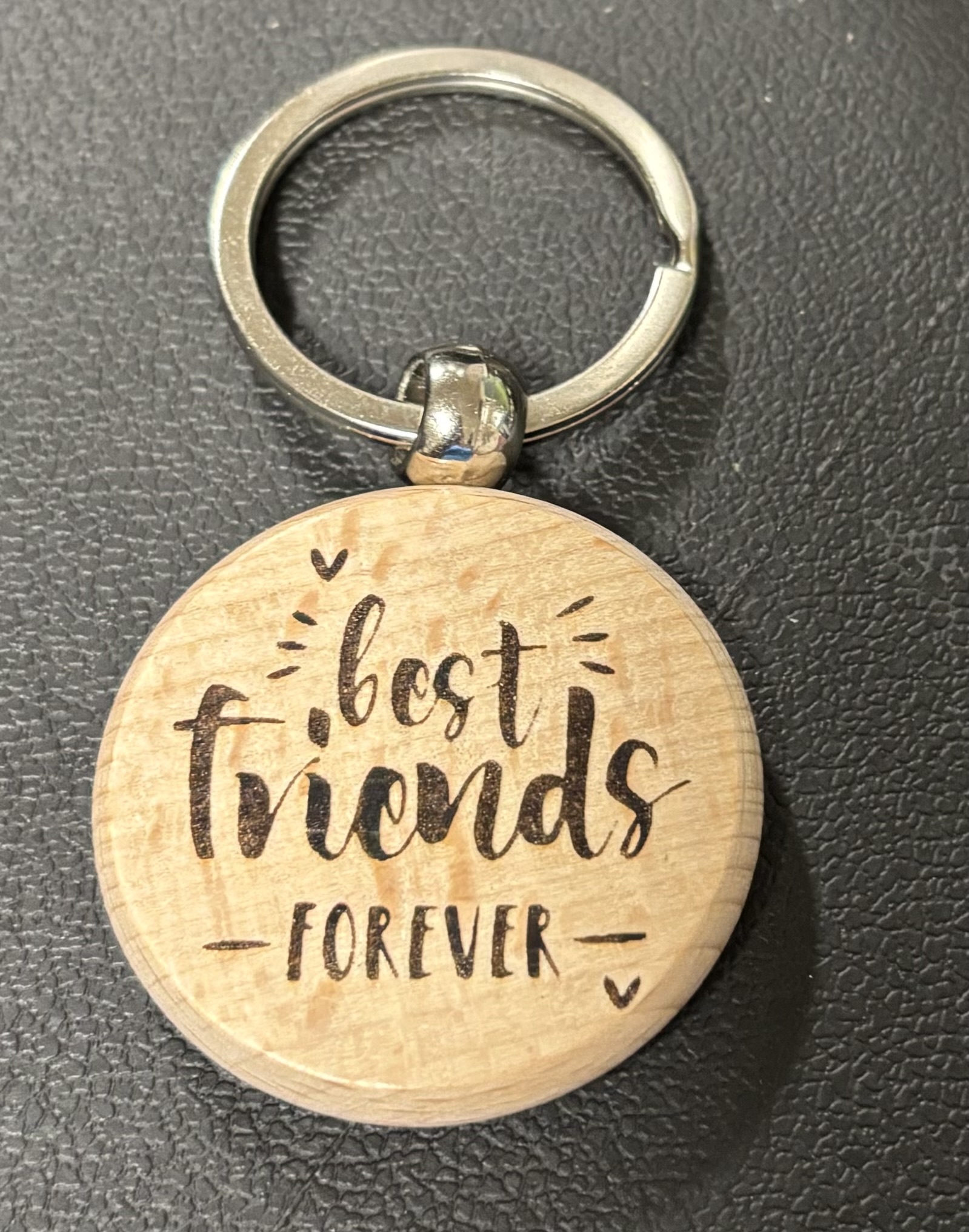 This Beech wood keychain features a crisp, engraved design with Best Friends Forever. The natural wood grain gives each piece its own character, while the sturdy metal ring makes it easy to attach to keys, bags, or gear. Cute, lightweight, and durable — a perfect everyday accessory or gift.