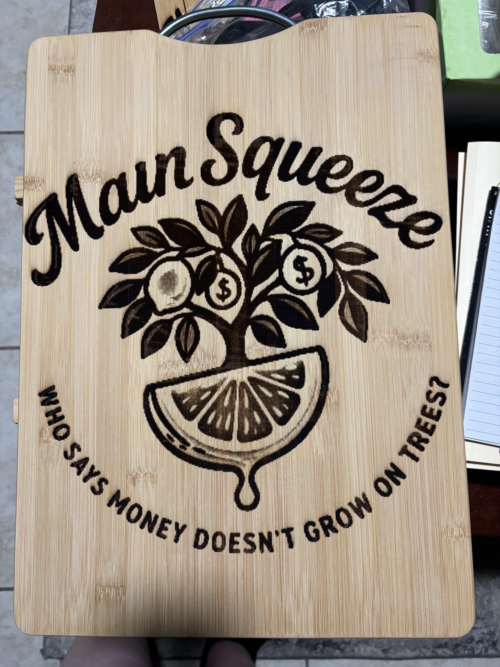 You are purchasing a blank cutting board. Once we receive your order, we will contact you with the cutting boards we have available in the price range for you to pick the one that you want. Once you choose, we will move forward with designing your cutting board to your specifications.